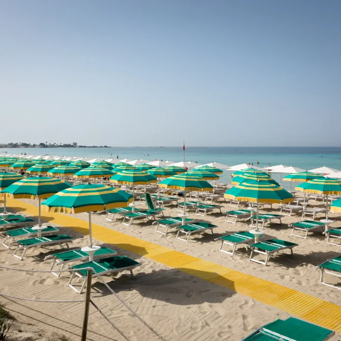 La sabbia fine, vellutata e soffice, gli ombrelloni allineati, il vento che soffia dal mare a pochi passi da voi…finalmente potete rilassarvi e godervi lo spettacolo di uno dei mari più belli del Salento!